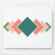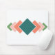 Dieses Mauspad hat ein Bauhaus-Design aus sieben sich überlappenden Diamanten, die vertikal entlang des Objekts in Retrofarben Blau, Rosa und Grün verlaufen.