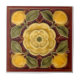 Eine reizende Kachel in Bordeaux, Gold und Grün mit einer Tudor-Rose in einem symmetrisch geformten Fliesen mit Majolika-Scheiben. Obwohl das Original in hoher Relief ist, ist diese Reproduktion glatt und flach und sieht nur dimensioniert aus. Ein atemberaubender Rahmen oder eine Akzent-Kachel für einen Backsplash oder eine Wand. Kann auch für Untersetzer, Trivets oder als Teil anderer Artikel auf Zazzle verfügbar verwendet werden. Erhältlich in 4,5 Zoll und 6 Zoll quadratischen Keramiken.