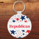 Dieser Schlüsselanhänger wird mit einem US Flagge-Kunstdruckdesign mit republikanischem Text gezeigt. Passen Sie dieses Objekt an oder kaufen Sie, wie es ist.