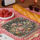 A riotous bloom at the edge of memory. Requiem for Arcana orchestrates golden scrollwork and lush florals—sun-washed marigolds, coral lilies, sky-blues, and faded rose—into a final baroque offering. It's a composition of color and echo, elegant yet touched by elegy.