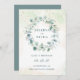 Elegante spanische Save the Date Karte mit "Reserva La Fecha" in einem Kranz aus Eukalyptus-Blätter und Grünpflanzen mit einem Hauch von Blau. Unten finden Sie Ihre Hochzeitsdetails in dunkelgrün über eine pastellfarbene Wasserfarbe mit Fesseln von Imitaten goldenen Glitzer. Die Rückseite ist in sanft blauem Grün gehalten. Dieses einfache, rustikale Design ist ideal für eine botanische Hochzeit im Sommer.