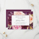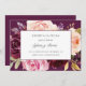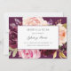 Moody Blumenkarte auf Spanisch mit Aquarellfarben in Pflaumentönen, Pfirsich und Rosa auf einem Pflaumenhintergrund. Save the Date Karte in Moody. Ihre Hochzeitsdetails befinden sich in einem rechteckigen, weißen Rahmen, der über die Blume verläuft. Auf der Rückseite ist ein Rose-Strauß in der Mitte, über dem gleichen Pflaumenschatten. Dieses elegante Design ist ideal für ein Fest im Herbst.