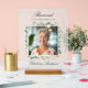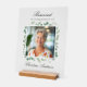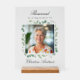 Reservierter Platz - Eukalyptus-Gedenkmal Weißes Transparentes Hochzeitsakryllisches Zeichen Ehre der Erinnerung an einen geliebten Menschen mit diesem eleganten Eukalyptus-Celebration des Life Reserved Seat Sign, mit einem weichen Aquarellbild Eukalyptus-Rahmen und einem anpassbaren Foto-Bereich. Dieses Acrylzeichen ist eine schöne und würdevolle Möglichkeit, einen Platz im liebevollen Gedächtnis bei einer Hochzeit, Beerdigung oder Feier des Lebensservice zu reservieren. Das minimalistische Grün symbolisiert Ruhe, ewige Liebe und Erinnerung - eine sanfte Hommage, die sich nahtlos mit jedem Dekor eines Events verbindet. Dieses Stück, das auf hochwertigem, klaren Acryl gedruckt und mit einem Holzständer gepaart ist, macht einen zeitlosen Sake für Familien, die jemanden ehren wollen. Ideal für: - Beerdigung und Feiern von Lebensdienstleistungen - Gedenktische und Gedenksitze - Hochzeiten, bei denen Liebende geehrt werden - Elegantes Beileid oder Dekor zur Erinnerung