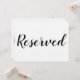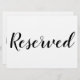 Einfaches Reserviertes Zeichen, um die Gäste auf die Sitzgelegenheiten aufmerksam zu machen. Fügen Sie einfach Ihren eigenen Text, Farbe, Bilder, etc. hinzu. Schauen Sie sich unsere anderen Artikel an, um aus dem Kartenmaterial, Poster und anderen Designoptionen zu wählen.