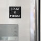 Residenz & Persist, weiße Buchstaben auf schwarzem Magnet
