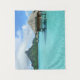 Wandteppiche mit einem Foto einer Paradieslandschaft mit einem luxuriösen Flitterwochenresort in der blauen Lagune von Bora Bora mit Blick auf die tropische Insel in Französisch-Polynesien.
