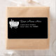 Ein Set von einfachem Silbergeschirr auf einer Tischserviette in Schwarz und Weiß mit Platz für Ihren Namen in Skript und Adresse in Retro Serif benutzerdefinierter weißer Text auf schwarz. Klicken Sie auf Anpassen, um Schriftart, Hintergrundfarben, Etikettengröße und vieles mehr zu ändern, und rettete Sie Ihr Design für später.