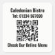 Restaurant Online Menü Aufkleber mit QR-Code, Firmenname und Telefonnummer. Restaurant Online Menü Aufkleber für alle Arten von geschäftlichen Werbezwecken.