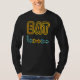 EAT Retrokunst basierend auf einem Vintagen neonischen Restaurantschild. Die Buchstaben sind gelb und rot, die Pfeile blau, rot und gelb. Spaß, trendige Werbekunst für Leute, die kochen oder essen.