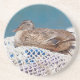 Auf der Insel Mallorca, Spanien, ruht sich eine Ente auf einem Haufen von Fischernetzen.