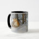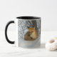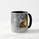 Wunderschönes nah-up mit Winterlandschaft von schneebedeckten Hügeln und ruhender Fuchs gerahmt mit Bäumen.