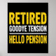 Retired Goodbye Tension Hello Pension Funny Retire Poster