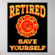 Retired Save Yourself Funny Fireman Retirement Vin Poster