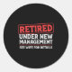 Retired Under New Management Funny Mens Husband Re Runder Aufkleber