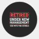 Retired Under New Management Funny Mens Husband Re Runder Aufkleber