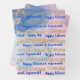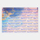 Dieser Designhintergrund auf allen drei Bogen weist eine blaue und rosa Aquarellfarbe auf, und die Imitate haben goldene Folie. BILDSCHIRM ONE enthält zwei Textnachrichten in einem Muster über den gesamten Hintergrund. Die Rubrik "ZWEI" enthält den gleichen Vorlagentext, der in einer Reihe über die Länge zentriert ist, und die Rubrik "DREI" hat eine zentrale Textnachricht für große Vorlagen. Personalisieren oder entfernen Sie jeden Text für drei speziell entworfene Blätter für JEDEN BESUCH.
