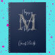 Dieses Happy Retirement Party Gästebuch hat einen marineblau Hintergrund, ein graues Monogramm, einen weißen Skriptnamen und einen Test. Einfache Anpassung, einfache Änderung oder Löschen von Beispieltext. Alle Rechte vorbehalten © 2024 Alan & Marcia Socolik.