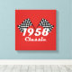 Retro 1958 Klassisches Race-Flag mit Schwarz-Weiß- Leinwanddruck