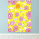 Retro 1960 Blume in lebhaftem Rosa und Gelb.