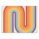 This artwork channels a retro graphic spirit, forming the letter‑like curve with parallel bands of red, orange, yellow, light blue, teal, and purple. The layered arcs flow in harmony, evoking the bold optimism of 1970s design. Set against a soft beige background, the vibrant rainbow palette stands out with clarity and rhythm. The composition balances simplicity and dynamism, creating a timeless visual that feels both nostalgic and modern.