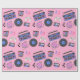 Retro blau und rosa Vinyl Platten, Boomboxen, Video-Gaming und Kassetten Geburtstag Geschenkpackung.