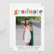 Eine einfache Ankündigungskarte für den Abschluss zum Feiern des neuen Absolventen der High School. Das Design zeigt Ihr Lieblings-Foto mit einer kühnen Typografie, inspiriert durch eine Retro-Farbpalette. Personalisieren Sie mit Ihrem Namen und High School.