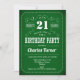 21. Geburtstag Party Einladung. Grün-weiße Geburtstagseinladung für Männer oder Frauen. Enthält Retro-Typografie-Script-Schriftart. Bis 21 Jahre! Elegante Einladungskarte, die sich perfekt für ein stilvolles Meilenstein-Fest eignet.
