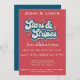 Genießen Sie das Feiern des 4. Juli mit diesem liebevollen Retro "stars & stripes" Design. Es hat ein rotes, blaues und weißliches Farbschema, um ihm eine 70er-amerikanische Atmosphäre zu verleihen. Es ist die perfekte Wahl für diejenigen, die den Unabhängigkeitstag im Stil feiern gewollt haben. Diese Einladung ist vollständig anpassbar, sodass Sie Ihr Party der Unabhängigkeit genau einladen können, wie Sie gewollt haben.