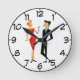 Fügen Sie Ihrer Zuhause oder Ihrem Büro eine Retro-50er-Dekoration mit einer maßgeschneiderten Wanduhr hinzu. Retro 50er Couple Cocktail Party Red Black Round Clock
