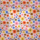 Farbenfrohe, blumengeschmückte Gestaltung in Retrofarben aus 60er und 70er.