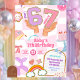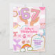 Retro-67-Ästhetik-Patch-Party-Einladung, Ich war 6 jetzt bin ich 7 Kinder-Geburtstagseinladung, editierbare pinke wellige preppy 7. Geburtstagsparty