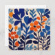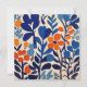 Blaue und orangefarbene Blüten auf beige Böden, Schnittstil, Inspiration Sixties-seventies, Matisse.