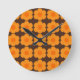 Retro 70er Blume Blumenmuster Orange und Braun Runde Wanduhr