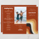 Dieses Retro-70er dreifach gefaltete Hochzeitsprogramm weist gewellte Linien in Bräune, Braun und Orange auf, die an den famosen 70er- und Hippie-Lebensstil erinnern. Funky Vintages Dreifachpapier mit weißem Skript neben den abstrakten Kurven. Groove mit diesem lustigen Erdtondesign.