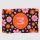 Personalisierte Monogramm erste Typografie in coolem Retro-1960er 1970er Vintag boho floral daisy Muster Design in auffallend orange und rosa auf einem schwarzen Hintergrund. Einfache Hippie-Stil einfache Blume-Disy-Muster. Original-Kunstwerk von Catherine Sweetman