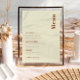 Entdecken Sie unsere Retro-Hochzeitsmenüs, inspiriert vom lebendigen Geist des 70ers, um Ihrem besonderen Tag eine bunte und nostalgische Touch hinzuzufügen. Unsere Hochzeitsmenüs, die in Vintagen und farbenfrohen Vorlagen erhältlich sind, sind so konzipiert, dass sie das Wesen der Zeit mit einer modernen Drehung erfassen. Ob Sie ein klassisches Vintages Design suchen oder etwas funky und farbenfroh, unsere Hochzeitsstation hat Sie überdacht. Die Vorlagen lassen sich leicht anpassen und drucken, sodass Sie ein personalisiertes Menü für Ihren großen Tag erstellen können. Genießen Sie Ihren Empfang mit unserer Getränke-Hochzeitskarte, die speziell für Ihre Getränke- und Cocktailauswahl entwickelt wurde. Mit unseren Retro-Hochzeitsmenüs können Sie sich auf die Gedächtnisspur begeben, die perfekt für Paare geeignet ist, die eine unvergessliche und festliche Atmosphäre für ihre Feier schaffen möchten.