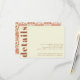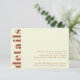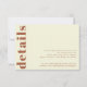 Die Retro 70er Inspirierte Wedding Details Card ist eine großartige Ergänzung zu Ihrer Hochzeitsvorratensuite. Das inspirierte Design der 70er Jahre besticht durch seine lebendige Energie und seine funky Ästhetik. Es ist perfekt für Paare, die eine einzigartige und unvergessliche Möglichkeit suchen, wichtige Informationen über Hochzeiten zu teilen. Machen Sie sich mit unserer Retro 70er Inspirierte Wedding Details Card zum Groove bereit. Mit kühnen Motiven, psychedelischen Wirbel und lebhaften Farben erweckt diese Karte den Geist der Disco-Zeit und verleiht Ihren Hochzeitsaufenthalten eine lustige Drehung. Kanalisiert die Nostalgie der 1970er Jahre mit diesem Retro-inspirierten Design, das eine vergangene Zeit mit Diskobällen, Glockenböden und Power in der Blume ehrt. Es ist eine spielerische und skurrile Wahl, die den Ton für ein lustiges und unvergessliches Fest Set. Mit unserer Retro 70er Inspirierte Wedding Details Card, die sich von der Masse abhebt, machen Sie einen bleibenden Eindruck. Es ist ein lustiger und unvergesslicher Weg, wichtige Hochzeitsinformationen mit Ihren Gästen zu teilen und sie für die Feierlichkeiten zu begeistern. Mit unserer Retro 70er Inspiriert Wedding Details Card feiern Sie Ihre Liebe im Retro-Stil. Es ist der perfekte Weg, um Ihrer Hochzeitsvorratssaison eine Touch Spaß und Nostalgie hinzuzufügen.