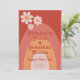 Mit dieser minimalistischen, blumigen Hochzeitseinladung aus den 1970er Jahren bringen Sie mit einer modernen Drehung einen stilvollen, zarten 70er-Spaß. Cooles Retro-Vintages, daisy Regenbogenbogen-Design in pfirsichrosa Terrakotta mit groovem Typografie-Skript, das einfach mit den einfachen Vorlagen personalisiert werden kann. Ideal, um den Ton für eine Sommerfrühlings- oder Herbsthochzeit zu setzen. Original-Kunstwerk von Catherine Sweetman