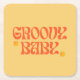 Retro 70's themed Schriftart in Senf und Orange und die Worte "Groovy baby".