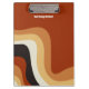 Diese groovy Retro-Clipboard weist gewellte Linien in Bräune, Braun und Orange auf, die an den 70er und Hippie-Lebensstil erinnern. Ein kühn Vintages Geschenk mit funky personalisiertem White Script neben den abstrakten kurvigen Linien. Groove mit diesem lustigen Erdtondesign.