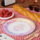 Retro 70er Pink Diskothek Ball Bachelorette Wochenende Papier Teller