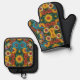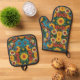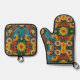Retro 70er Stil farbenfrohe Gänse Ofenhandschuh & Topflappen-Set