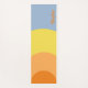 Im Retro-Stil im 70er gefertigte Yoga-Matte in Blau-, sonnigen Orange- und Gelbtönen. Der Stil, die Größe und die Farbe des Schriftartes können Sie ändern, indem Sie auf "Bearbeiten mit dem Designwerkzeug" klicken.