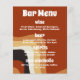 Dieses großartige Retro-Hochzeitsmenü mit seinen schlichten Linien in Bräunen, Braun und Orange erinnert an den 70er und den Hippie-Lebensstil. Eine kühne Vintage Getränkeliste mit funky-white Skript neben den abstrakten, kurvigen Linien. Groove mit diesen lustigen Erdtönen.