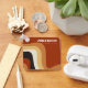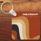 Dieser knallharte Retro-Hochzeitsfest-Schlüsselanhänger weist gewellte Linien in Bräune, Braun und Orange auf, die an den 70er und den Hippie-Lebensstil erinnern. Fett Vintager Empfang Gefallen mit funky weiße Skript des Paares Name neben den abstrakten kurvigen Linien. Groove zusammen mit diesem lustigen Erdtondesign.