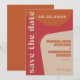 Abstract shapes retro vintage 70s style unique wedding save the date with bold typography in a trendy modern boho red, beige tan and burnt orange terracotta chic color palette. +++++++ Please note that all the colors are changeable. ++++++++++++ The card is suitable for casual stylish contemporary weddings.
