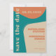 Abstract shapes retro vintage 70s style unique wedding save the date with bold typography in a trendy modern boho teal, beige tan and rusty orange chic color palette. +++++++ Please note that all the colors are changeable. ++++++++++++ The card is suitable for casual stylish contemporary weddings.