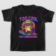 Eine spielerische Cartoon-Katze in einer Retro-80er-Sonnenbrille reitet auf einer Neonrellenbogenwelle mit dem Slogan "Zu Cool für die Hausaufgaben" ein Surfbrett. Mit fett arcade-artigen Typografien, lebhaften Neonfarben - lila, heiß rosa, elektrisch blau und Zitronengelb - Set vor einem 3D-Gitterhintergrund mit Retrosonne. Ideal für Gamer, Schüler und alle, die 80er Nostalgie mit einer lustigen Drehung Lieben.