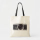 Diese Leinwandtasche kennzeichnet eine retro herrührend vone Schwarz- und Chrom-Singlelinse (SLR)reflexkamera der 70er oder 80er. Die Schwarz- und Chromkamera hat einen mit Filigran geschmückten Rolleeffekt, der auf den umgebenden Chromkörper geätzt wird.