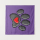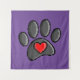 Retro 80er Videospiel 8 Bit Pixel Art Hund Pfoten drucken. Gestaltbarer Wandteppich. Lila Hintergrund. Geschenkidee für Hundefreunde jeden Alters.